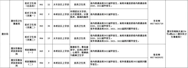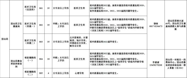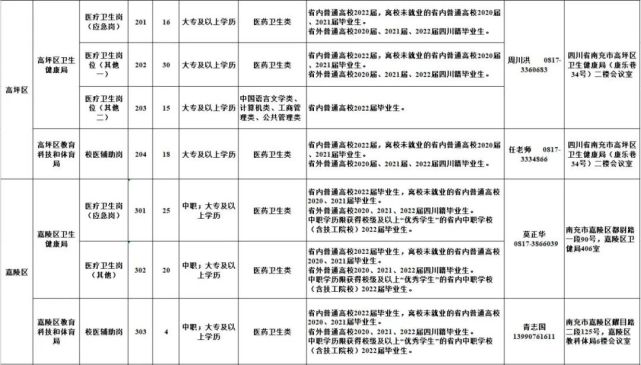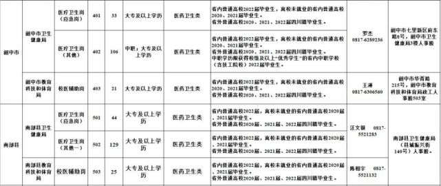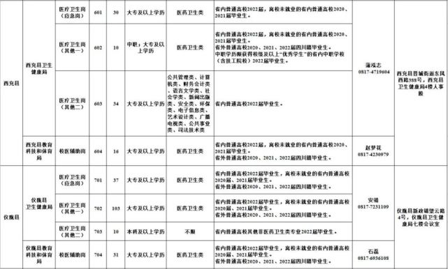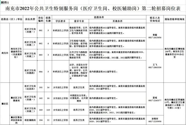 1.南充市2022年公共卫生特别服务岗(医疗卫生岗、校医辅助岗)第二轮招募岗位表