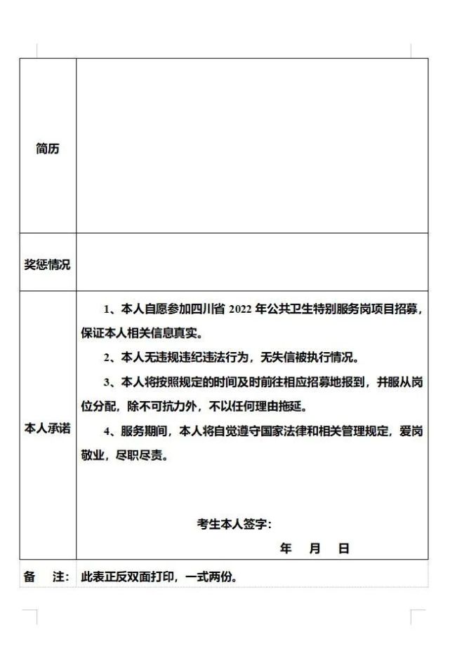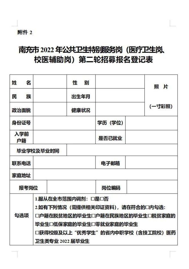 2.南充市2022年公共卫生特别服务岗(医疗卫生岗、校医辅助岗)第二轮招募报名登记表