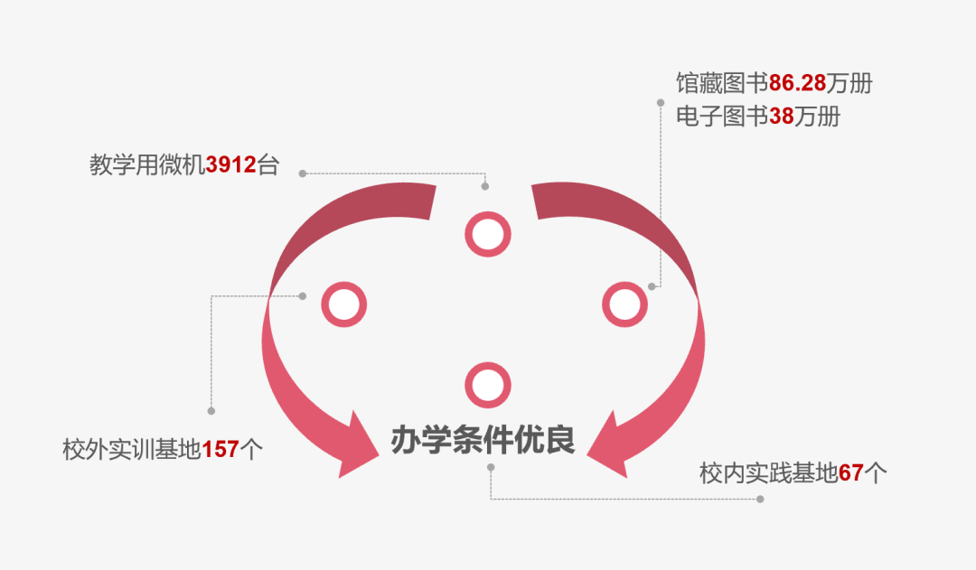 学院现有建筑面积32.77万平方米,固定资产总额4.13亿元,教学仪器设备先进,设备总值1.15亿元,拥有教学用微机3912台、馆藏图书86.28万册,有电子图书38万册,中国知网等电子资源。校外有计算机应用技术、数控技术、畜牧兽医、园林技术、印刷技术、汽车检测与维修技术等实习实训基地157个,另建有校内实践基地67个,其中计算机应用技术和汽车检测与维修技术是中央财政支持的实践基地。