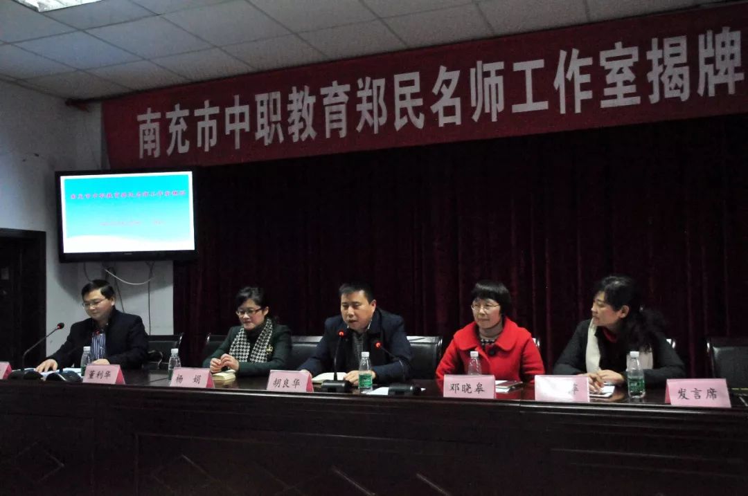 12月12日下午,中职教育郑民名师工作室在四川省南充中等专业学校学术厅隆重揭牌,这是南充市首家且唯一一家市级中职教育名师工作室。南充市教育和体育局副局长胡良华、师范科科长曹萍,职成科科长董利华、南充市教育科学研究所副所长杨娟,以及工作室指导专家陕西科技大学李体仁教授、西华师大继续教育学院刘敏副院长、陕西航空技师学院尹燕军部长、中国重汽南充分公司数控首席技师王敏、市数控技能大师张志成出席了仪式,工作室全体成员及成员单位负责人、南充中专校全体教职工参加了会议。本次启动仪式由南充市教科所职教室主任李和清主持,这是南充职业教育发展史上的又一里程碑式事件。