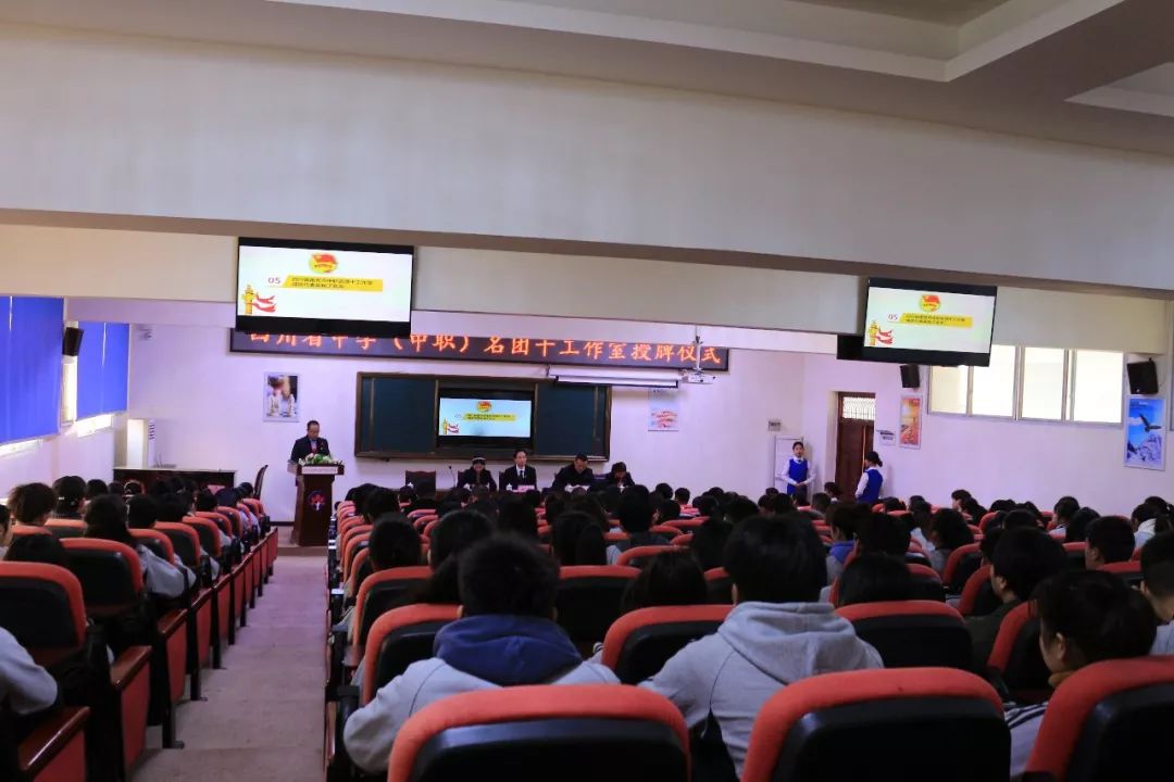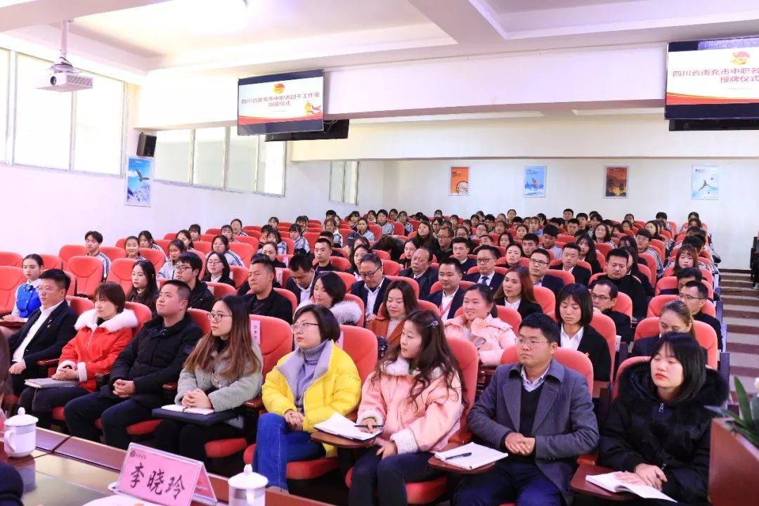 12月26日下午15:00,四川省南充市中职名团干工作室授牌仪式在四川省南充外国语中等专业学校多功能厅举行,共青团南充市委书记、工作室导师邓强;共青团南充市委副书记冯榛;泽英教育集团党委委员、南外校执行校长、工作室导师罗晓燕;党委委员、副校长李晓玲;四川省南充市中职名团干工作室领衔人、学校团委书记刘炼,四川省南充市中职名团干工作室全体成员出席授牌仪式,学校全体行政干部、团员代表、教职工代表参加了授牌仪式,授牌仪式由泽英教育集团党委书记、南外校副校长李泽政主持。