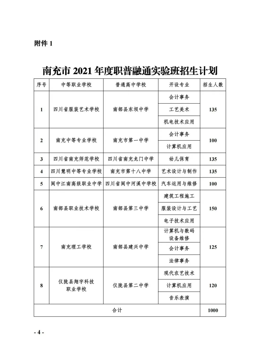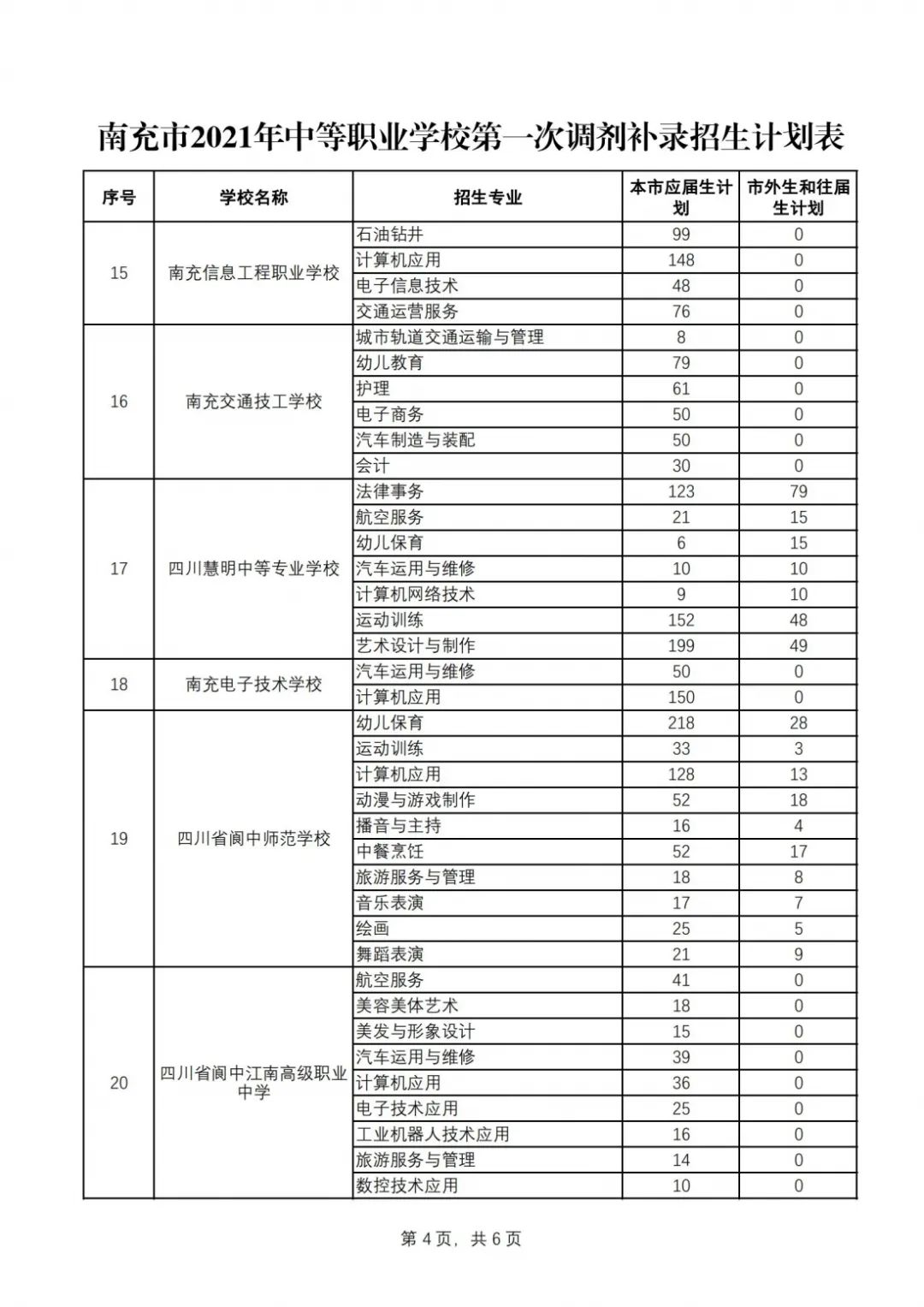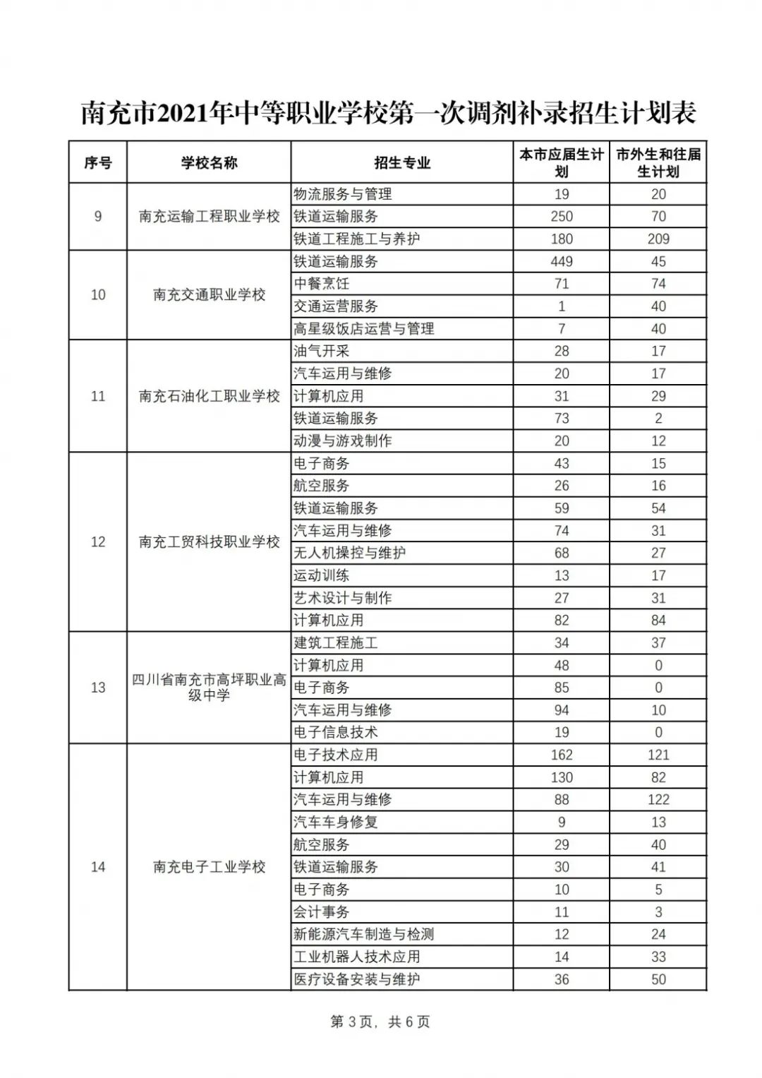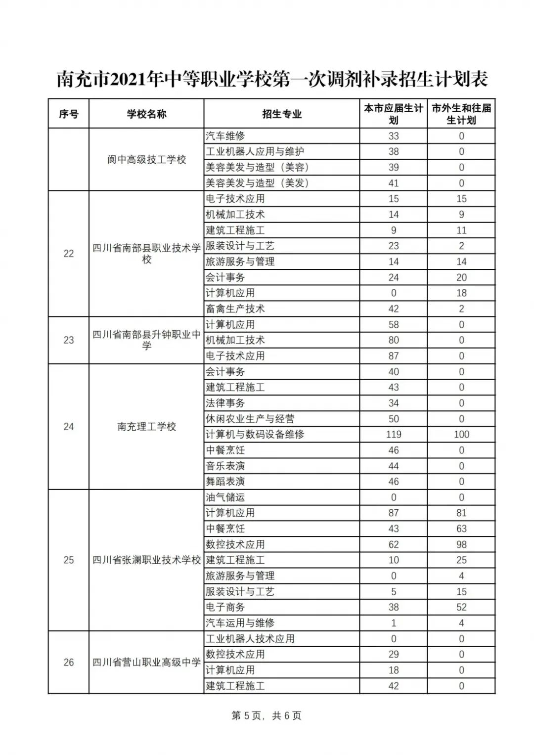 1.南充市2021年中等职业学校第一次调剂补录招生计划表