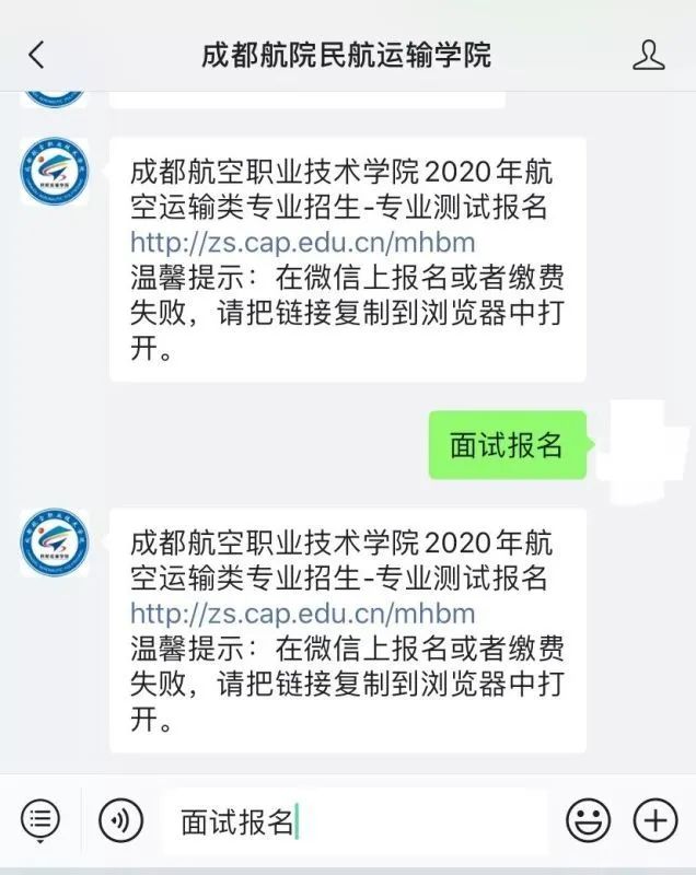 手机报名:微信关注“成都航院民航运输学院”微信号:myhkfwx101,输入“面试报名”,根据推送链接进行报名。