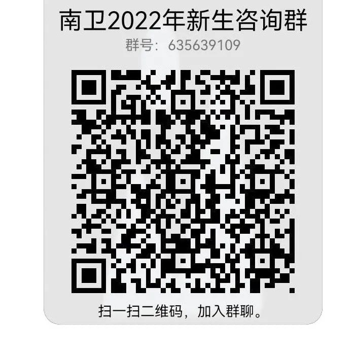 南卫2022年新生咨询群QQ:635639109