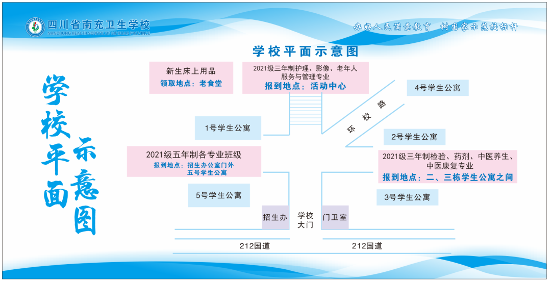 南充唯一的国家级示范中职学校——南充卫校欢迎你!读中职学校,升学就业两不误。2021年高职单招、对口高职统招考试我校捷报频传,成绩再创历史新高。2021级新同学,新起点,新征程,新希望,相信通过学校的精心培育和你个人的不懈努力,你一定能够谱写精彩的华章,开创美好的未来。为了你能更快捷方便地完成入学报到手续,请认真阅读报到须知,提前做好相关准备工作。