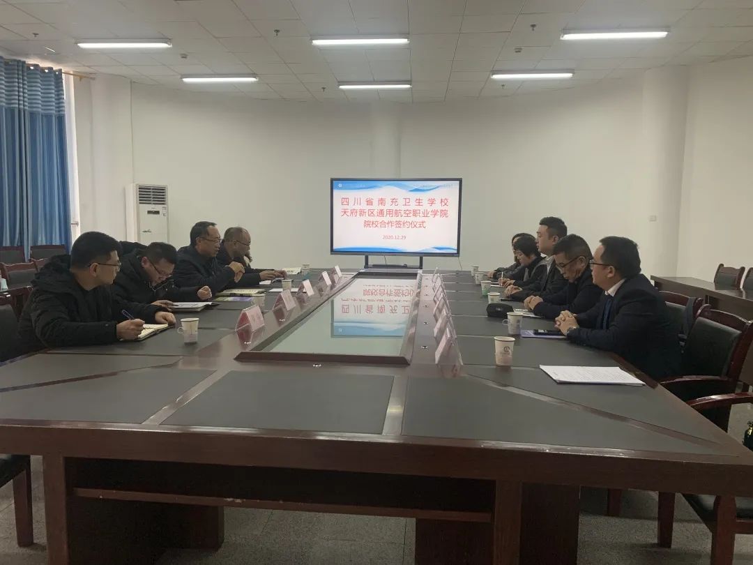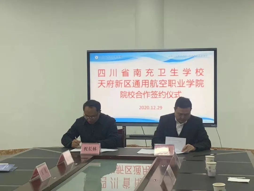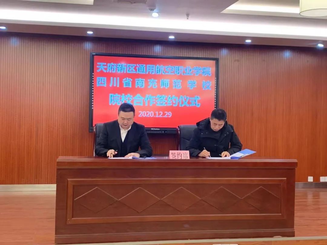 12月29日,天府新区通用航空职业学院在南充市与四川省南充卫生学校、四川省南充师范学校分别举行了校校合作签约仪式。我校理事长邱林、副校长徐诗勤,南充卫生学校校长祝长林,南充师范学校党委书记校长杨震、党委副书记纪委书记何世林、副校长伍银峰、副校长何勇出席签约仪式,参加签约仪式的还有南充卫生学校及南充师范学校相关职能部门负责人及我校就业与对外合作处、招生处负责人等。