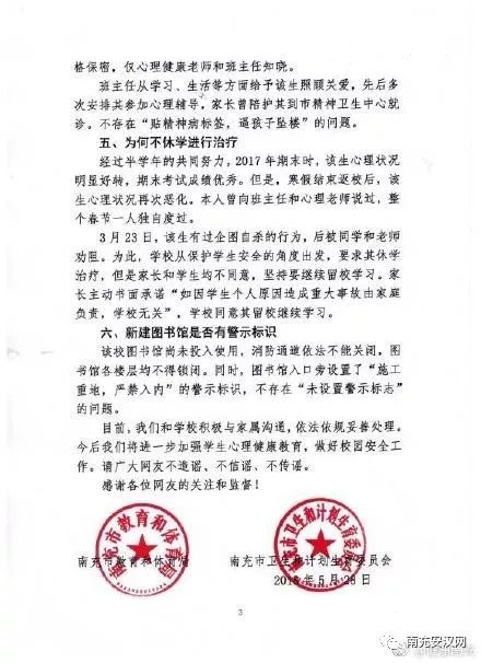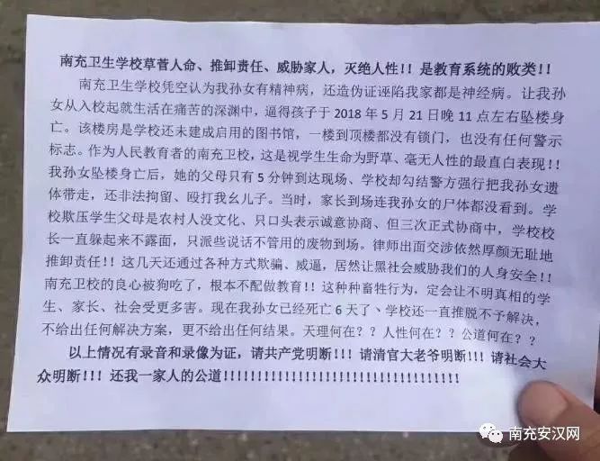 原贴名:家人对南充卫校学生坠楼事件官方回复的回复