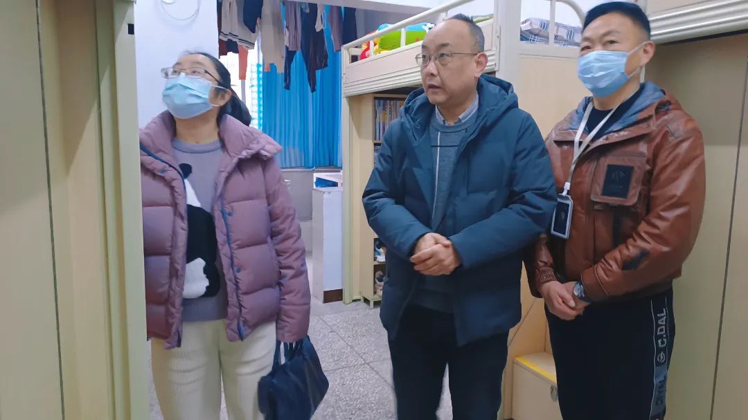 最后,检查组深入宿舍,检查环境卫生、安全设施及管理日志,以保证学生更好的住宿条件。关注消防电器问题,杜绝安全隐患,提醒定期宿舍通风透气,定期进行卫生消杀,所有工作落实到位。