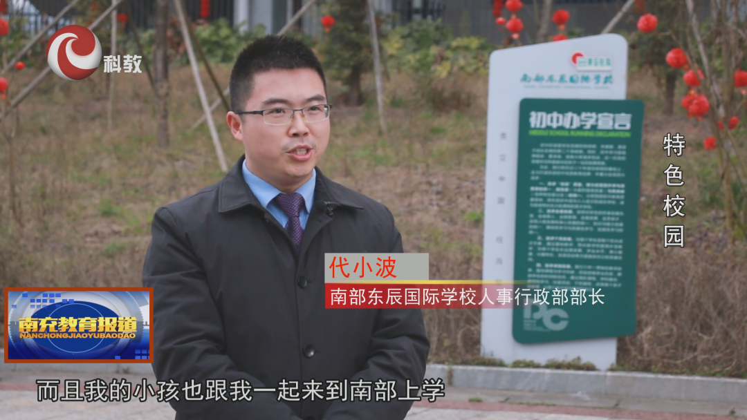 在南部东辰国际学校建校之初就来到了南部,我从成都而来,而且我的小孩也跟我一起来到南部上学。我们的小孩就在我们的学校上学,在这里来了以后,我们就感受到了这里是一片教育的热土,这里山清水秀,人杰地灵,一江五湖亲水梦,梦在南部天空下,我们的学校在陈校长的带领下,感受到了家一般的温暖。
