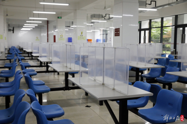 为防疫安全考虑,学校食堂在每张就餐桌上实名张贴使用者姓名,严格按照防控要求落实错峰错时使用,专人专座。