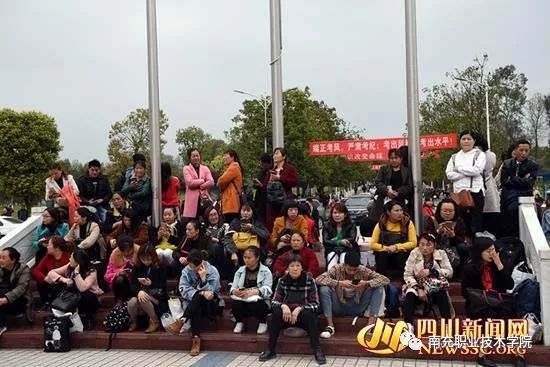 南充职业技术学院利奥广场上等待考生考试的家长们