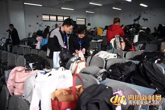 南职院工作人员认真看管考生存放的行李物品