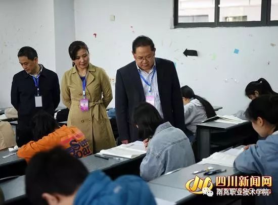 南充职业技术学院2019年单独招生考试笔试考场四川新闻网南充3月30日讯(成潮生 朱涛 摄影报道)3月30日,南充职业技术学院2019年单独招生考试在学院利奥楼举行。南充市人大常委会副主任、南充职业技术学院党委书记徐远火到考场巡查,南职院副院长郑小红,党委委员、副院长唐峻峰陪同徐远火巡查考试。