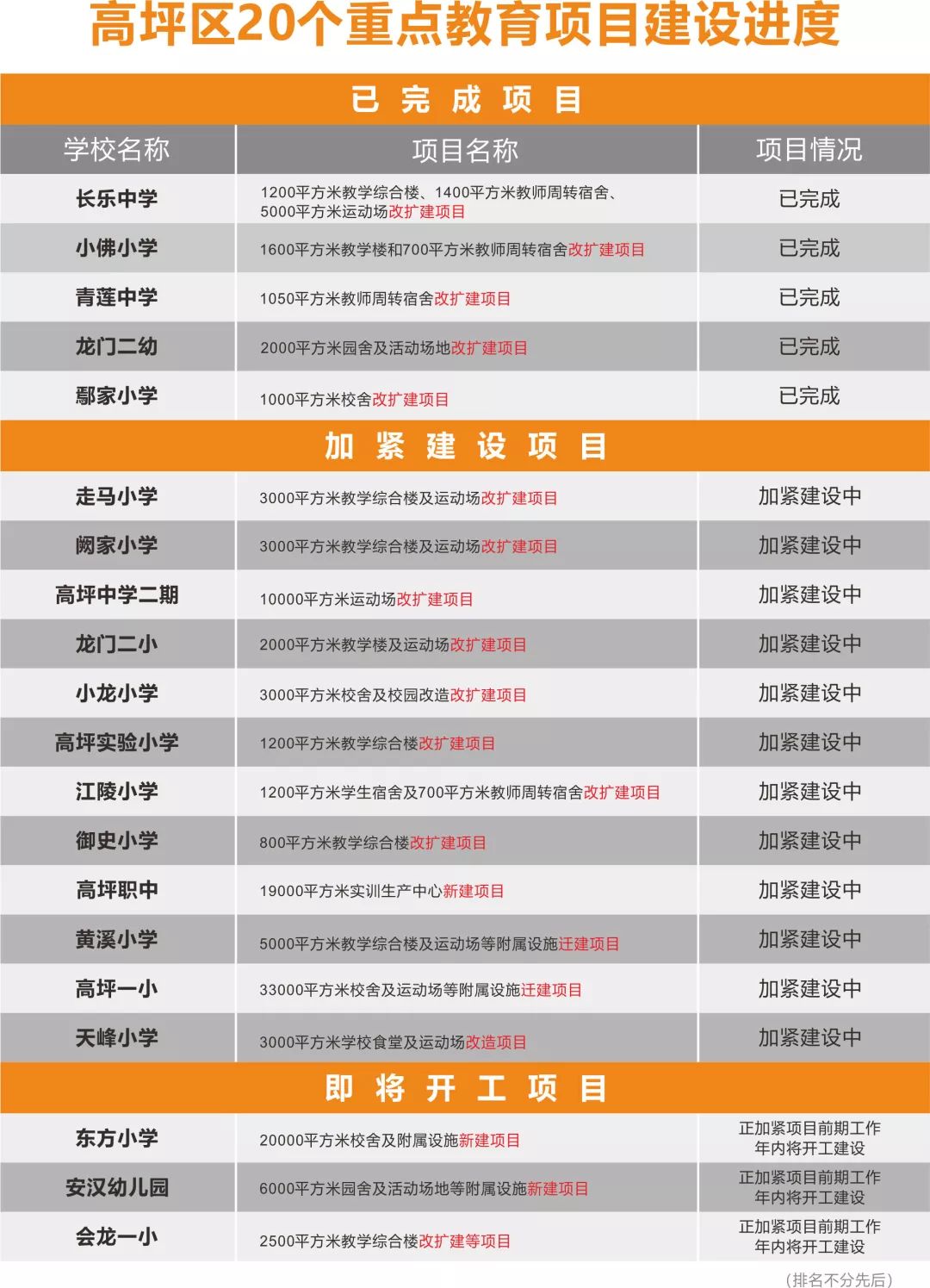 高坪中学二期将对10000平方米运动场进行改扩建,目前项目正在加紧建设中。