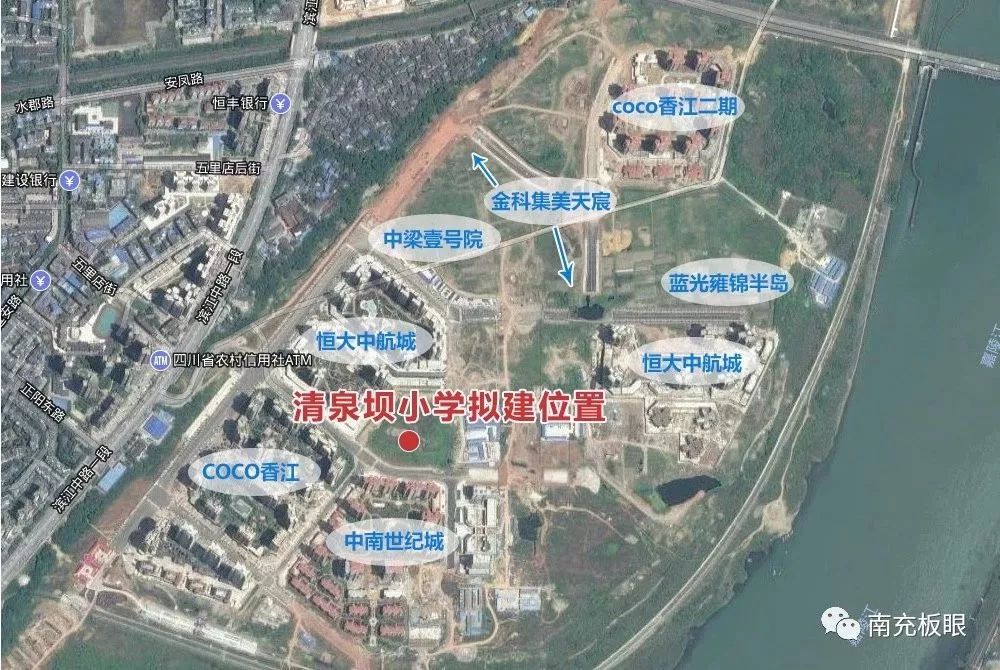 新建南充国际高中,位于荆溪片区,府荆大道北侧;