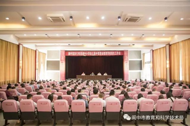 5月19日上午,市教科局在师训中心学术报告厅召开会议,安排部署阆中市2017年普通中小学、幼儿园及中等职业教育学校招生工作。教科局班子成员,局机关全体职工,直属单位负责人,各教育督导责任区主任、负责招生工作的督学,各中学(师范)校长、分管招生工作的副校长、教导主任,各单设初中、九年一贯制学校校长和教导主任,各单设小学校长,特殊教育学校校长,各独立建制的公办幼儿园园长,各中等职业教育学校校长近300人参加了会议。会议由副局长缪官主持。