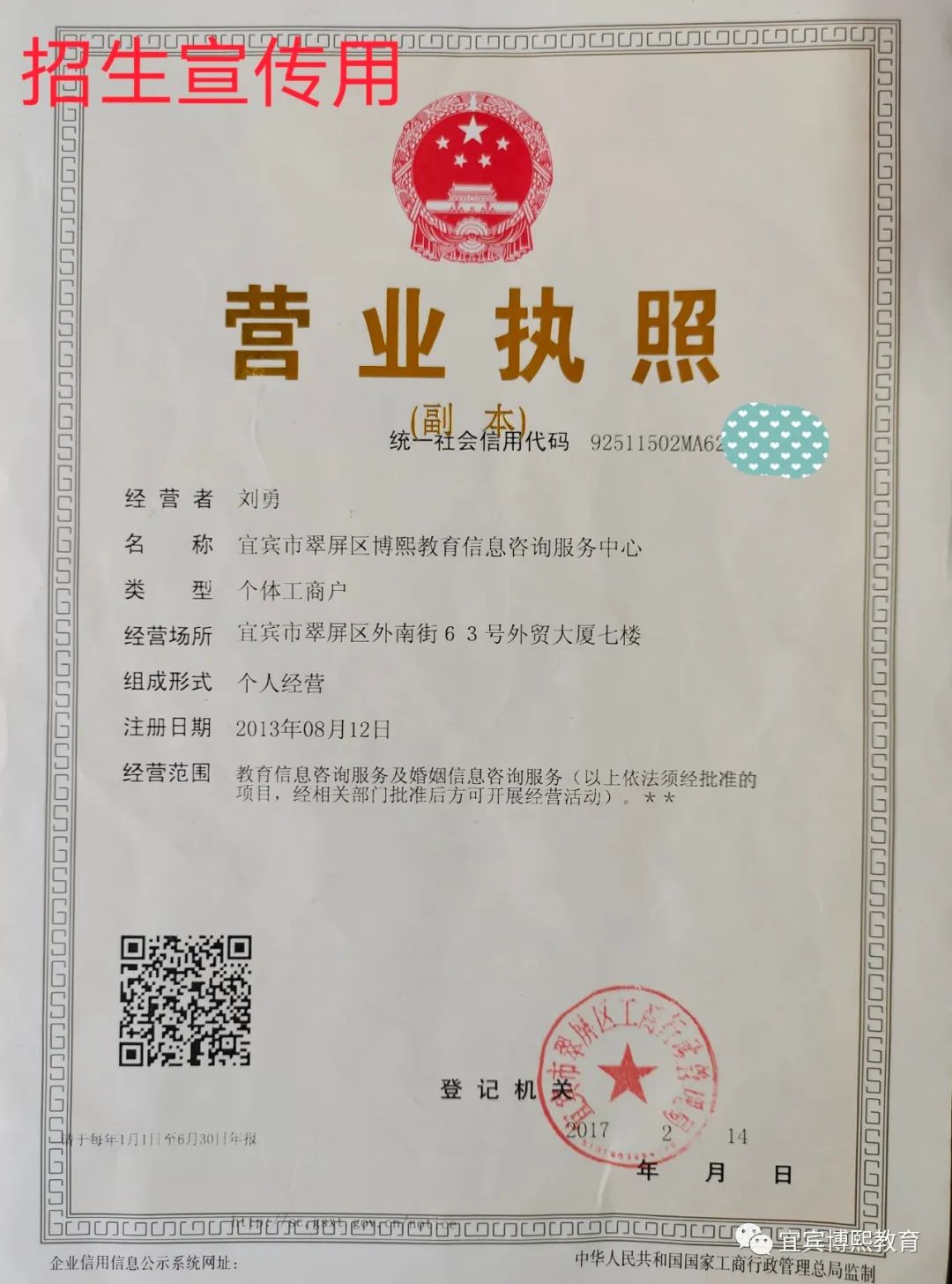 宜宾博熙教育营业执照