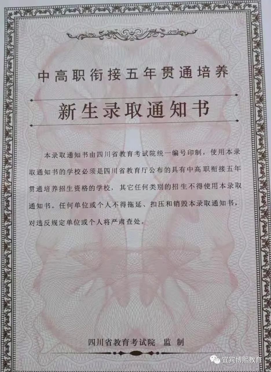 是指初三应届毕业生,参加当地市<州>组织的高中阶段升学考试(简称中考),成绩达到当地市<州>划定的5年制省控制线(最低录取分数线),在当地市<州>的五年制高职窗口上填报志愿,由招生学校按招生政策,通过四川省教育考试院(省招办)进行录取(录取通知书上盖有“四川省高等教育招生考试委会录取专用章”),前3年进行中职教育,后2年进行高职(大学)专科阶段教育的一种培养方式。被录取的同学,在完成前3年的中职学习后,不需要参加高考,只需通过直升转录考核和考试,而到直升转录大学读2年的全日制大学专科,毕业后,由直升转录大学颁发全日制大学专科毕业证书。对于学有余力、愿意继续深造的同学,还可以在专科毕业时,通过全日制专升本考试,到本科大学读2年的全日制大学本科,毕业后,由本科大学颁发全日制本科毕业证书,可以申请学士学位证书和考研究生。目前,四川省的全日制专升本可达20%,也就是说,平均100个专科毕业生中,有20个同学,可以通过考试进入本科大学读书。