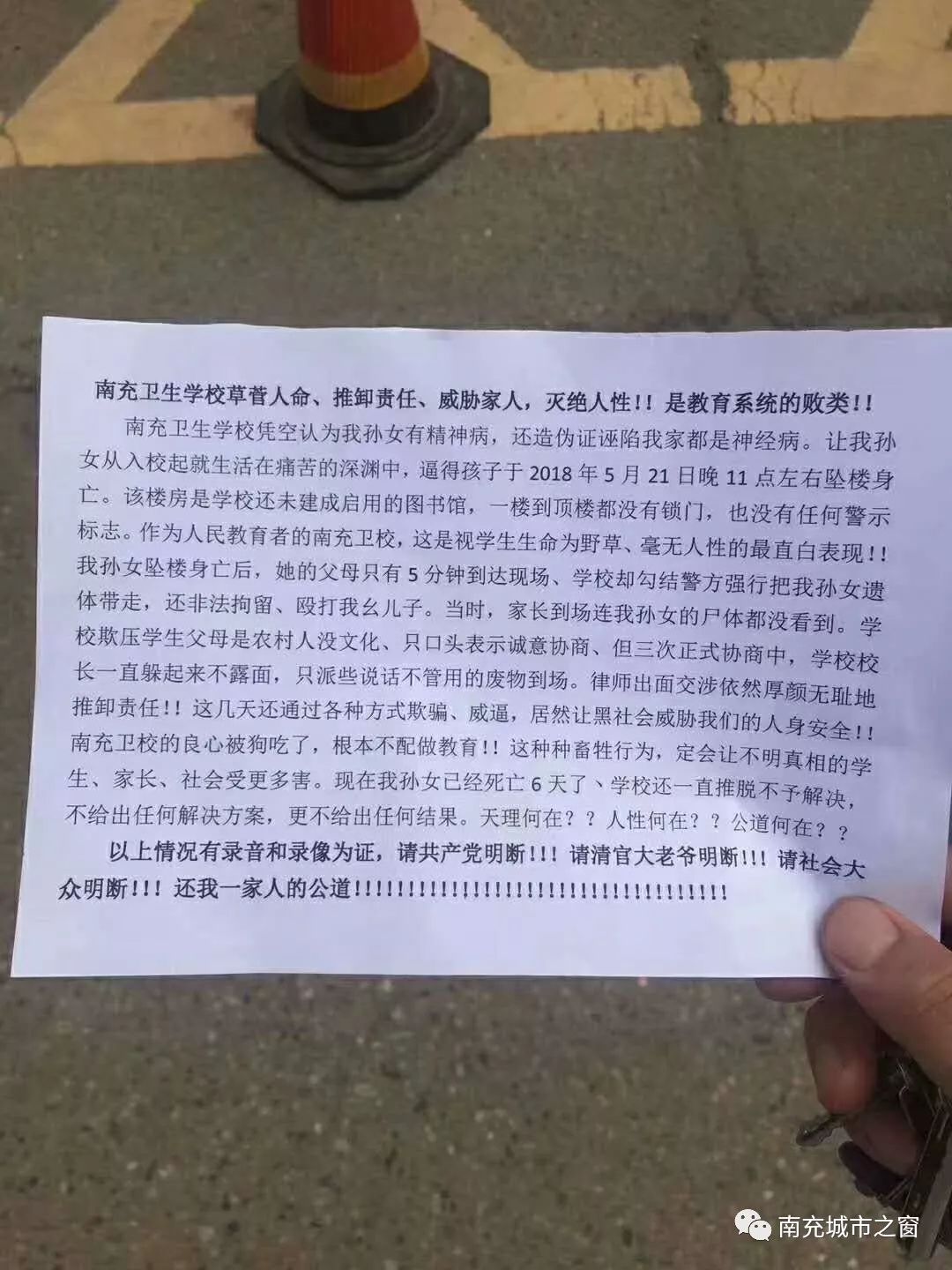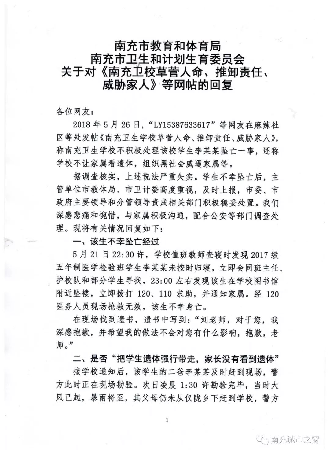 原贴名:家人对南充卫校学生坠楼事件官方回复的回复