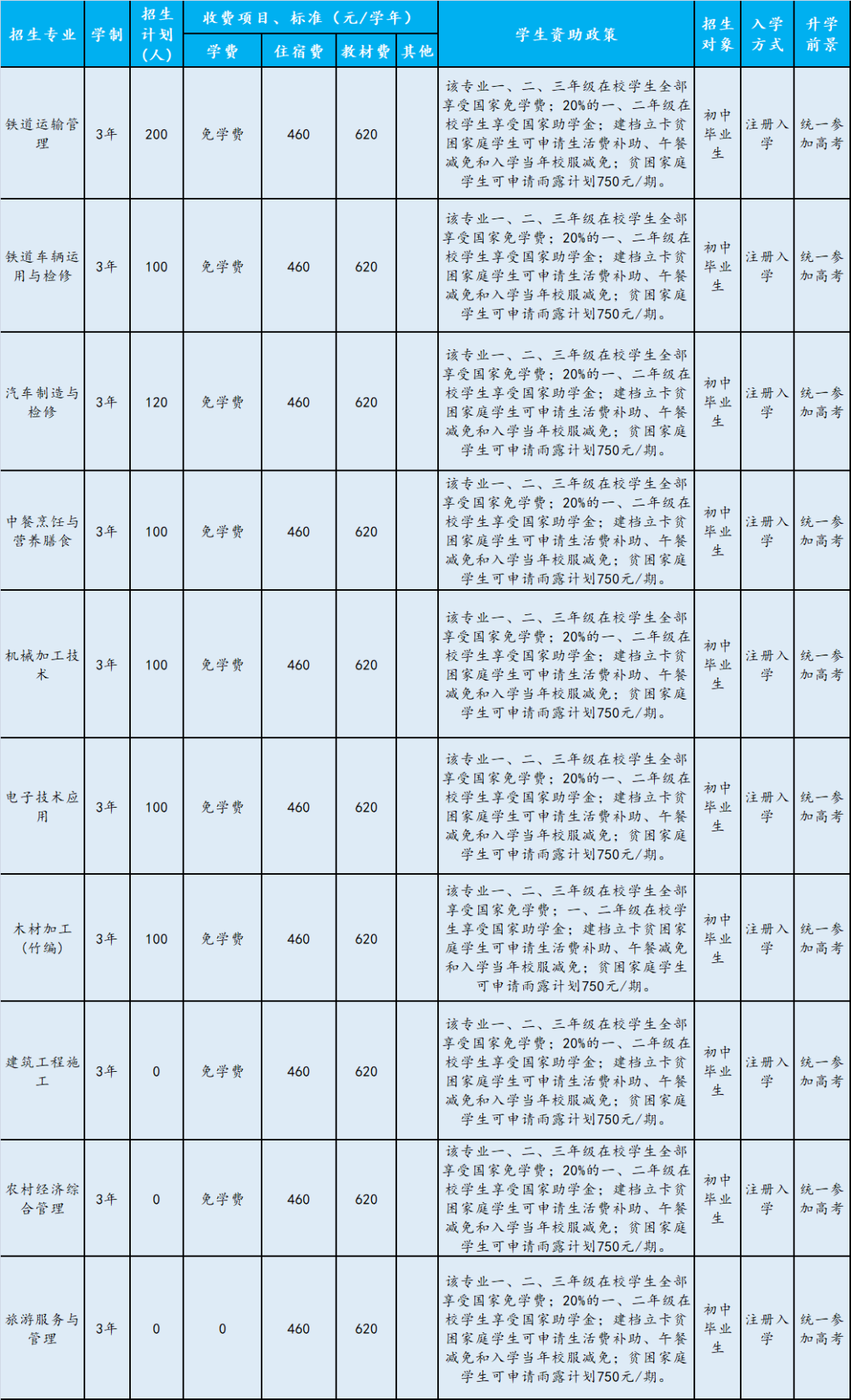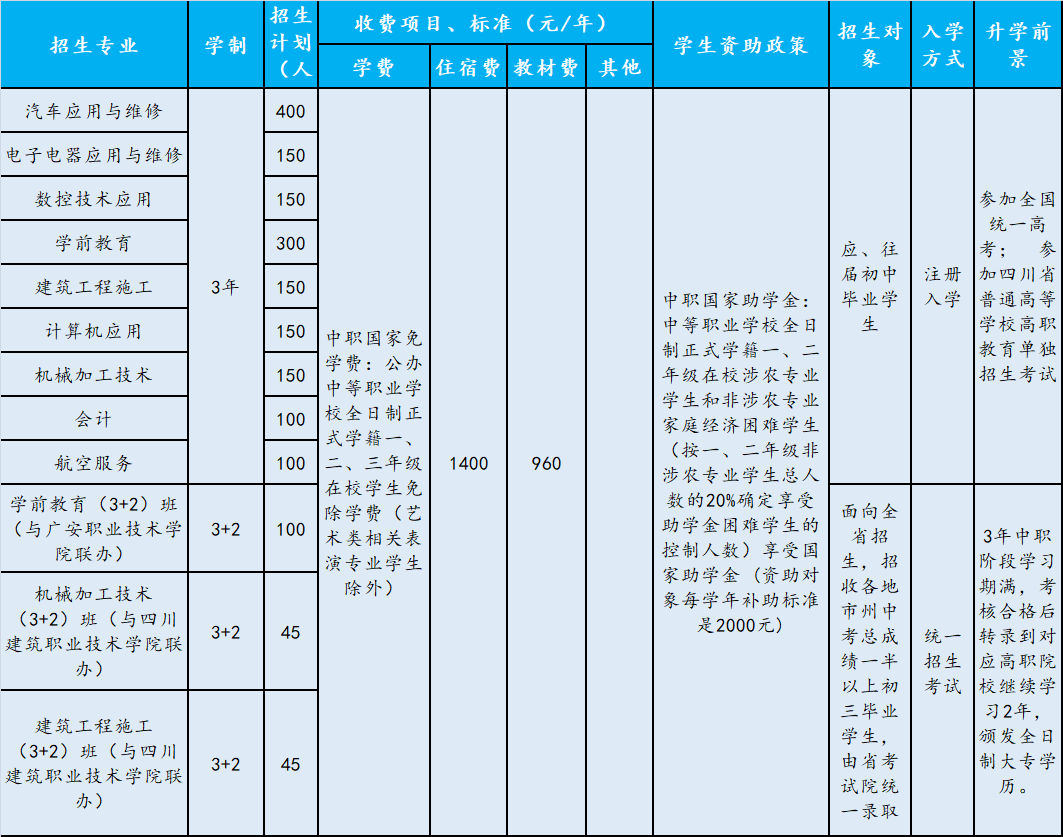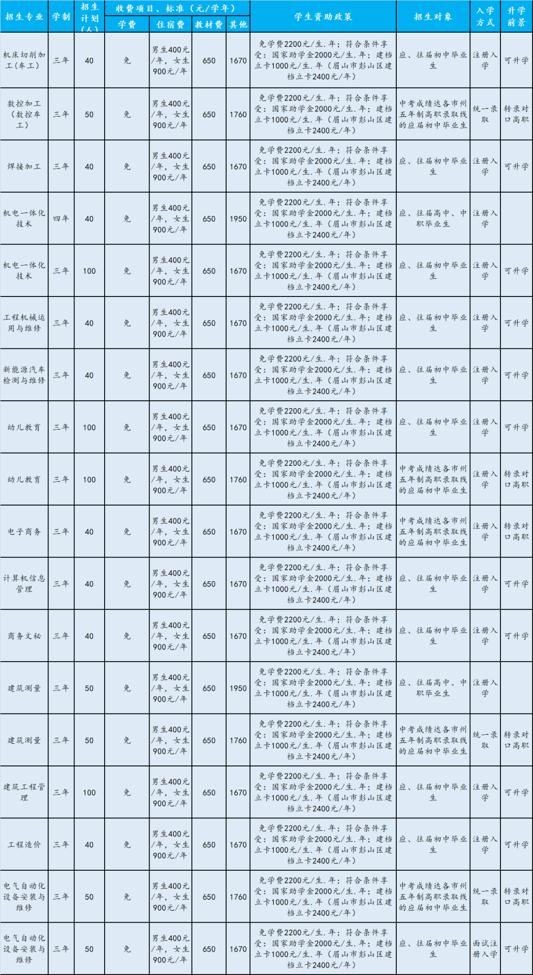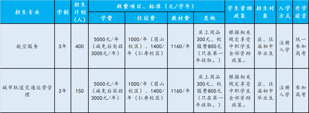 眉山市各中职学校招生计划