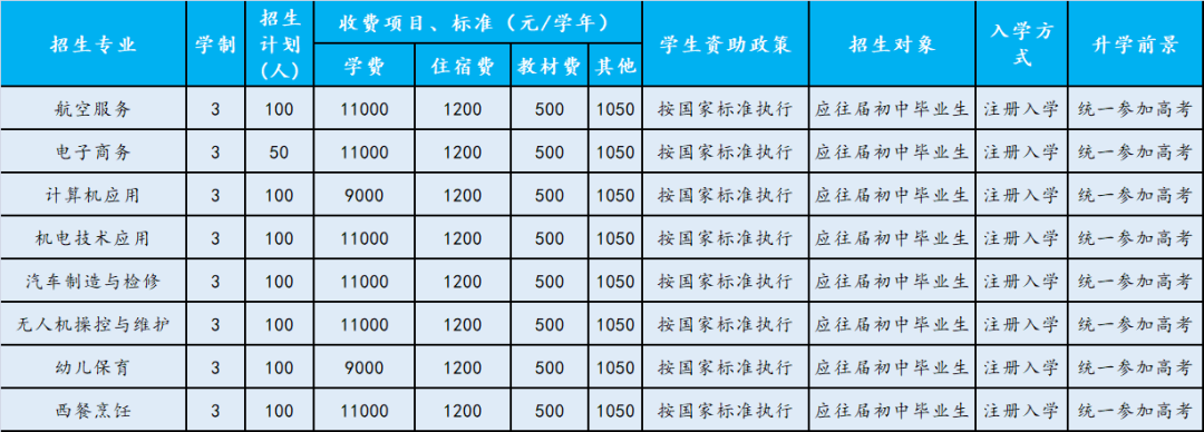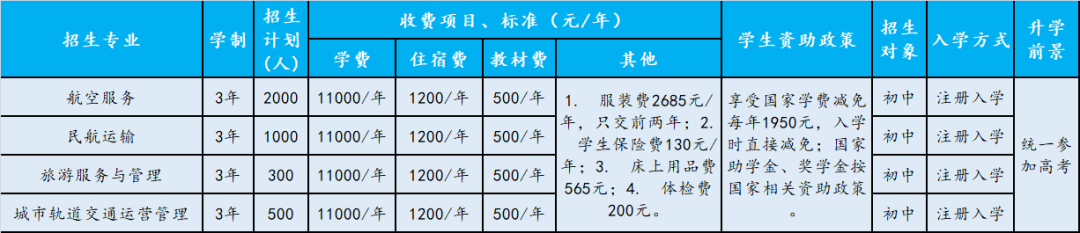 学校采取“3+3”中高职衔接的办学模式,打通学生由中职通往大学专科、本科的深造通道。我校学生完成3年中职学习后,可就读全日制大专学院天府新区航空旅游职业学院,优秀学生可专升本,取得本科文凭。