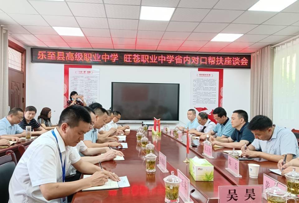 近日,四川省乐至县高级职业中学校长倪卫东一行到访四川省旺苍职业中学,开展乡村振兴省内对口帮扶工作交流座谈。乐至县与旺苍县两地相关负责人参加。