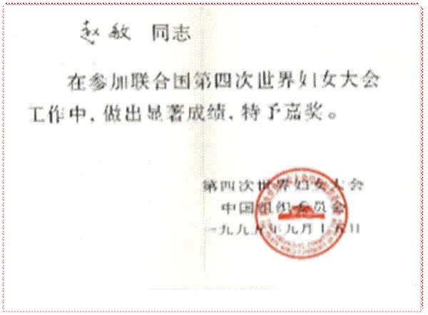 1995年9月,联合国第四次世界妇女大会在北京举行,189个国家的政府代表,联合国系统各组织和专门机构,有关政府间和非政府组织的代表共15000多人与会,是中国承办的规模最大的国际会议。本次大会我们四川省去了70多个代表,我有幸成为代表之一,并因为“燃灯助学计划”获得了大会颁发的“突出贡献奖”。参加这次大会使我更加深刻地认识到对外交流的重要性,近200个国家和地区的代表来到中国,了解了世界怎么看中国,比如还有一些国家的妇女代表到处找中国的小脚,说明很多国家真的不了解我们。