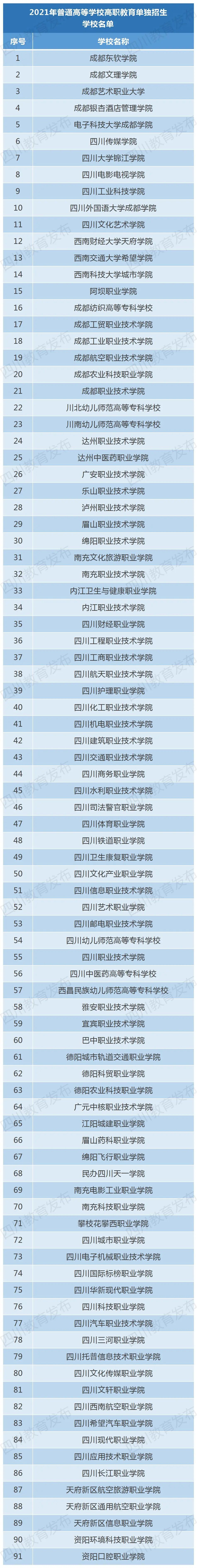 1月20日,四川省教育厅公布了2021年普通高等学校高职教育单独招生学校名单。