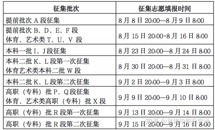 (四)征集志愿的时间安排