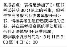 A:3+证书高考录取只检索省线以上的考生志愿哦,省线以下的考生虽然可以填写志愿,但是不会被检索到呢。不过不怕哈,咱们可以等到补录的时候再看看~Q:如果我3+证书高考被某间院校录取了,但是参加自主招生能上更好的专科院校,那我可以填自主招生的专科志愿吗?
