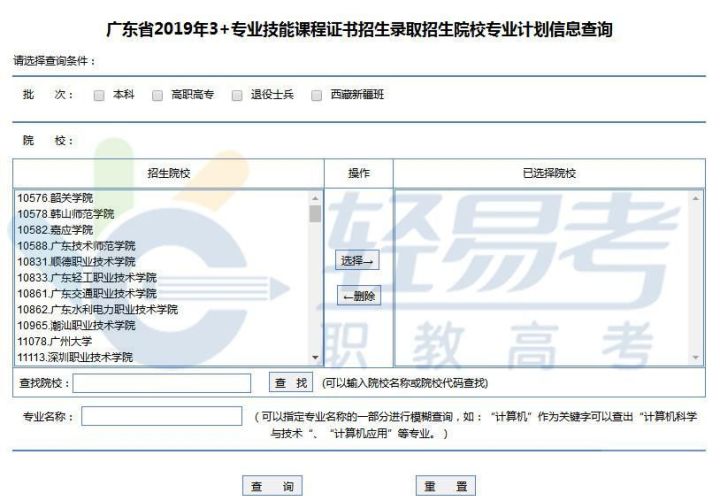 4、如需查询招生院校专业计划,可以点击“3+专业技能证书专业计划查询”按钮,进入查询即可。