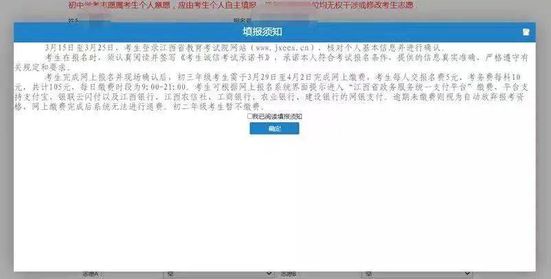 个别浏览器无法正常显示所有内容,请按住Ctrl键,再滑动鼠标滚轮缩放 屏幕,勾选“我已阅读填报须知”,点击“确定”按钮