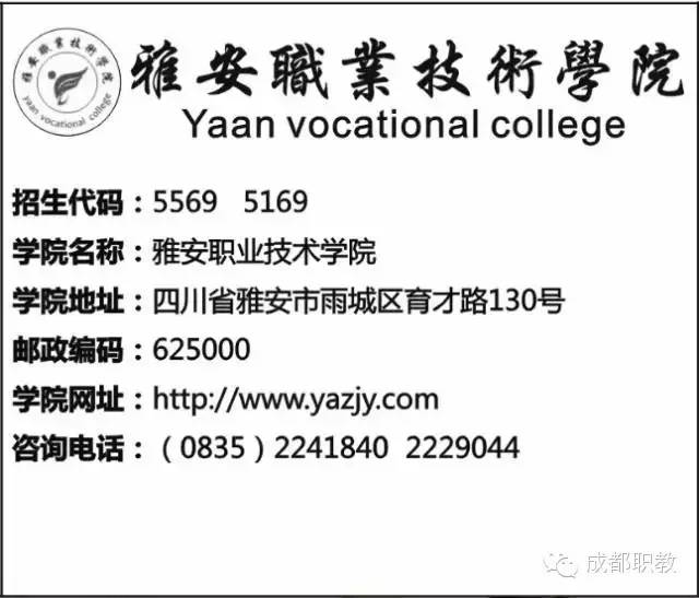 推荐院校:雅安职业技术学院