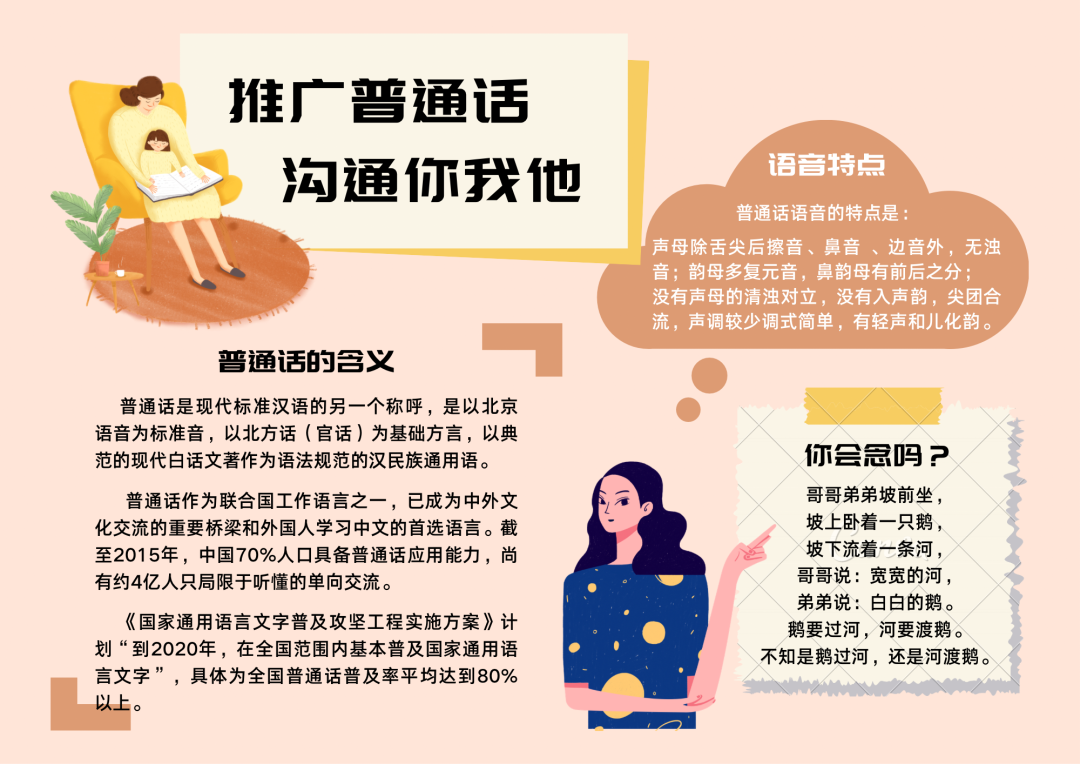 普通话就像是一根线,将知识与文明串联。它是人们交流的通用语言,是与外界沟通的重要桥梁。