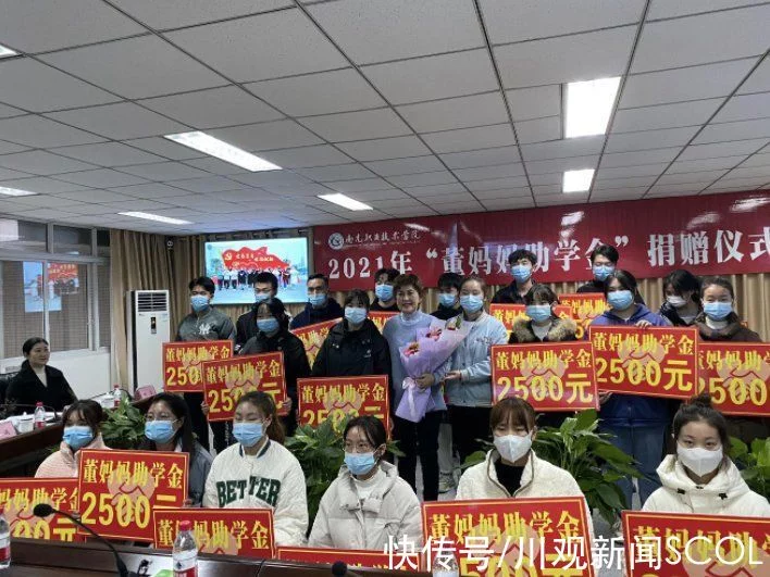 12月7日,经四川省台联引荐,2021年“董妈妈助学金”发放仪式在南充职业技术学院举行。英籍台商董淑贞女士向该校20名贫困本科生发放助学金5万元。