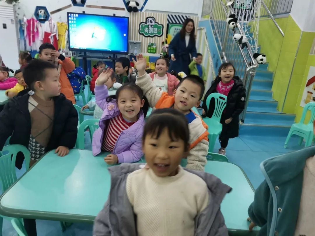 孩子们高兴地挥着小手,和他们打着招呼:“叔叔好!伯伯好!阿姨好!”做懂礼貌的乖宝宝~