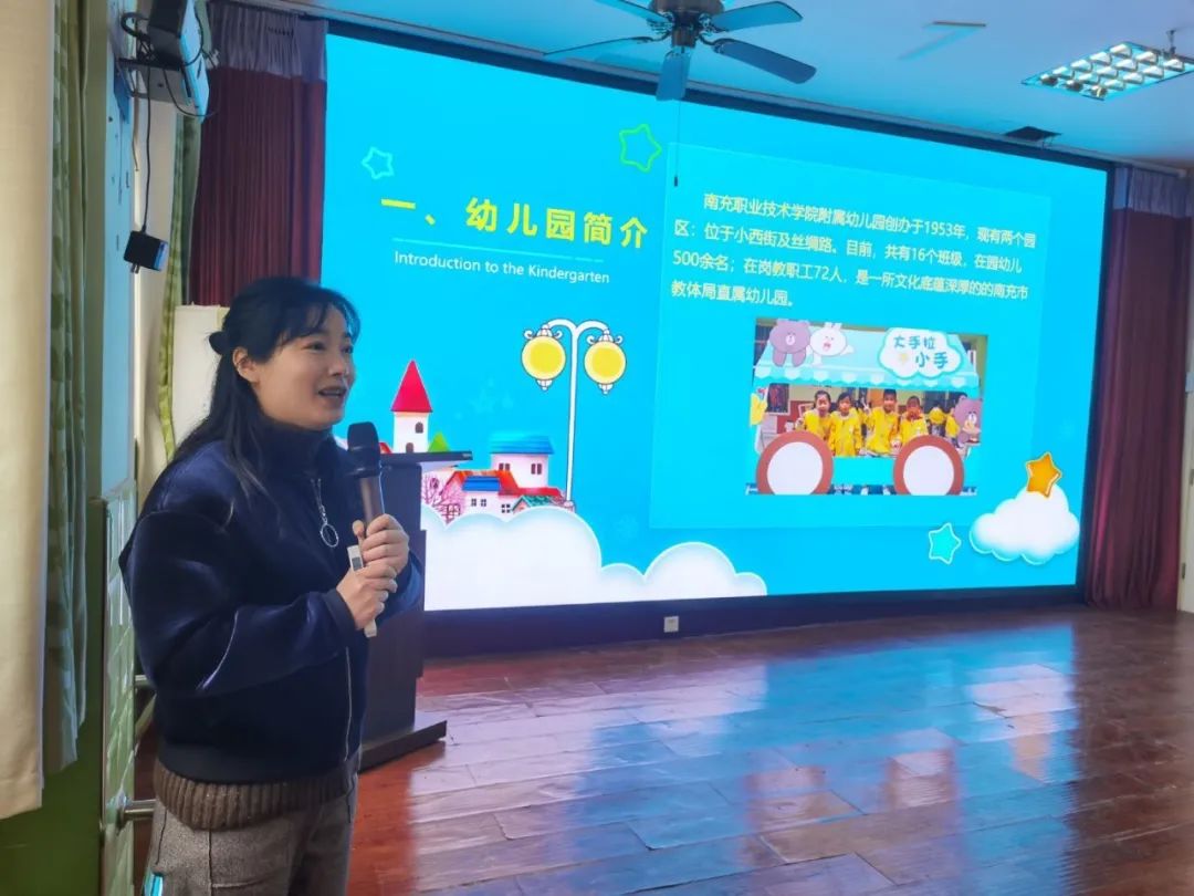 幼儿园副园长李朝霞就我园的科研、科普、体育三项特色工作向与会来宾进行交流,并就幼儿园教师培养模式给出自己的想法,来宾们对幼儿园的了解由精致转向精致、融合、专业,幼儿园虽小,却是一所极具历史沉淀、文化底蕴且充满温暖和人情味的园所。