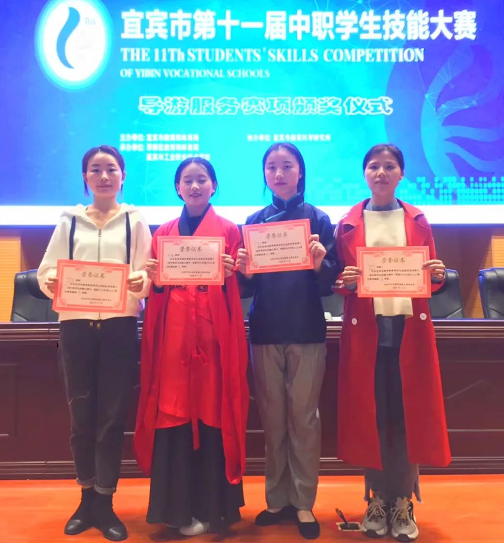 Student Awards学校教育教学成效卓著。学校连续十余年被评为宜宾市或叙州区(原宜宾县)教学质量一、二等奖;仅2016年至2020年间,学校服装、食品等专业学生就有32人次获省级技能竞赛奖项,111人次获市级技能大赛奖项;其它各类文艺、体育、科技创新等活动获奖千余人次。