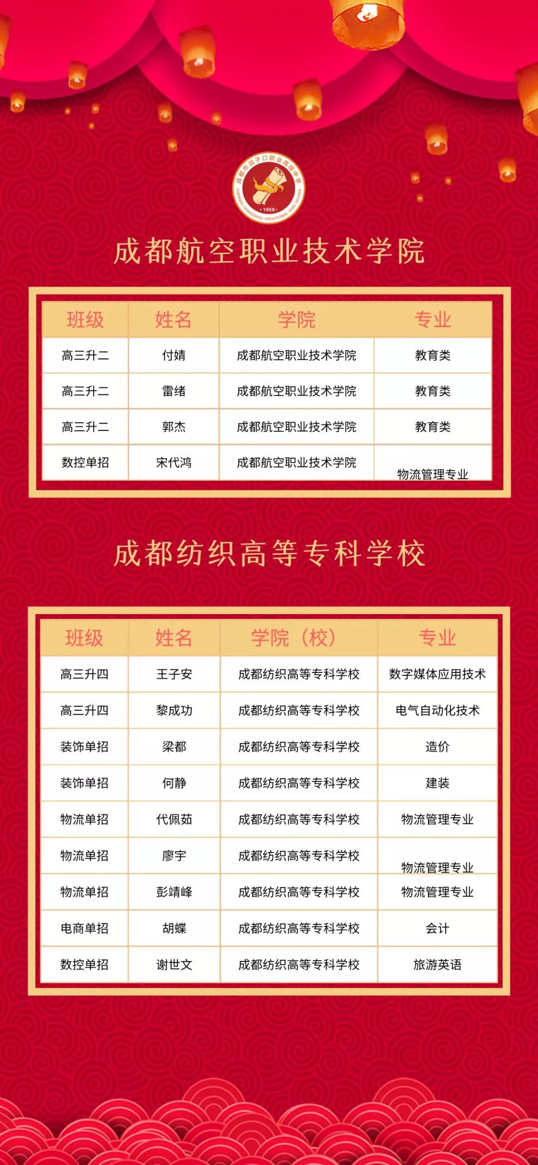 成都航空旅游职业学校高职三班单招成绩喜人,再获佳绩 !