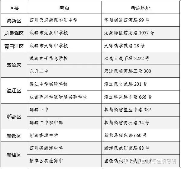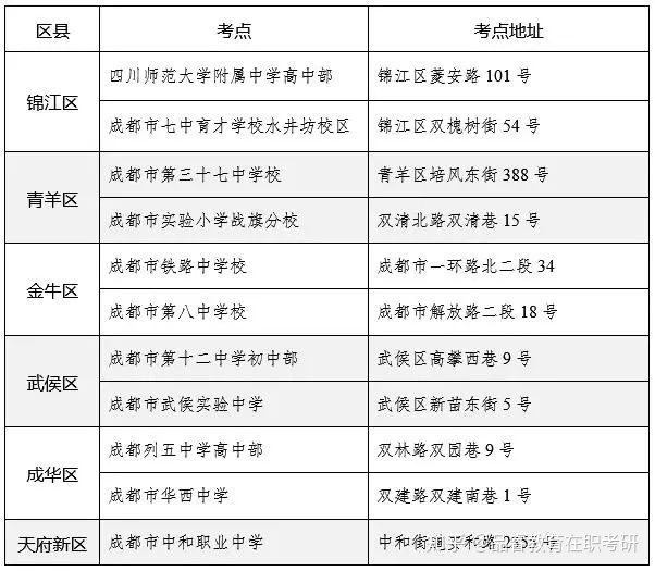 提醒广大考生:成都市教育考试院(桂花巷34号)非考试地点。成都市教育考试院报考点(5143)本次共安排23个考点(见附表),请考生按照准考证上的考点信息做好考前准备。