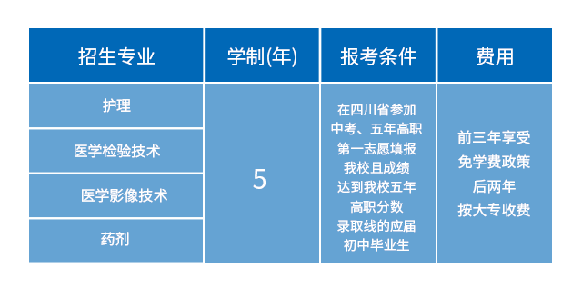 2017年五年制专科招生专业