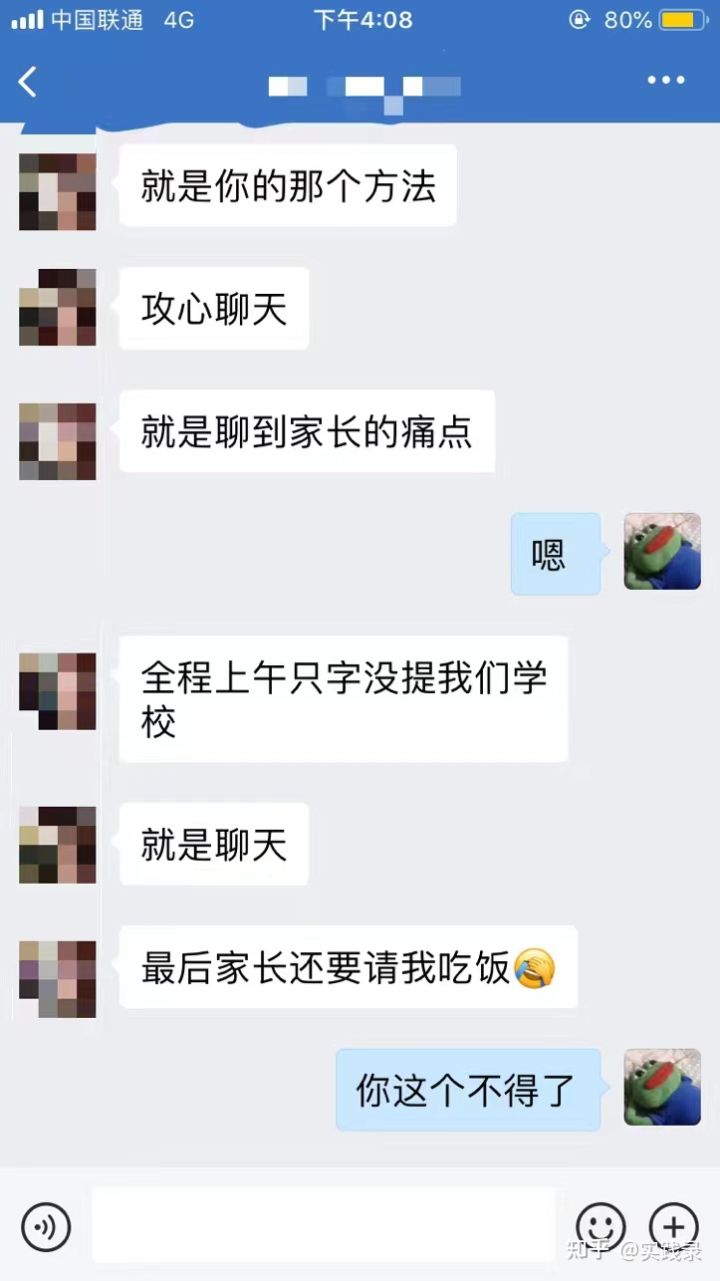 要点:电话聊天能短则短,电话聊天的目的是家长微信,不要恋战,因为电话聊天是临场发挥,哪句话说不好就废了,微信可以持续跟进,想好了再回复。