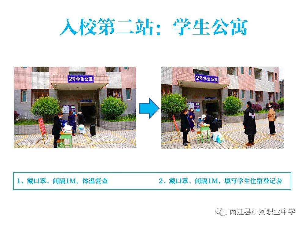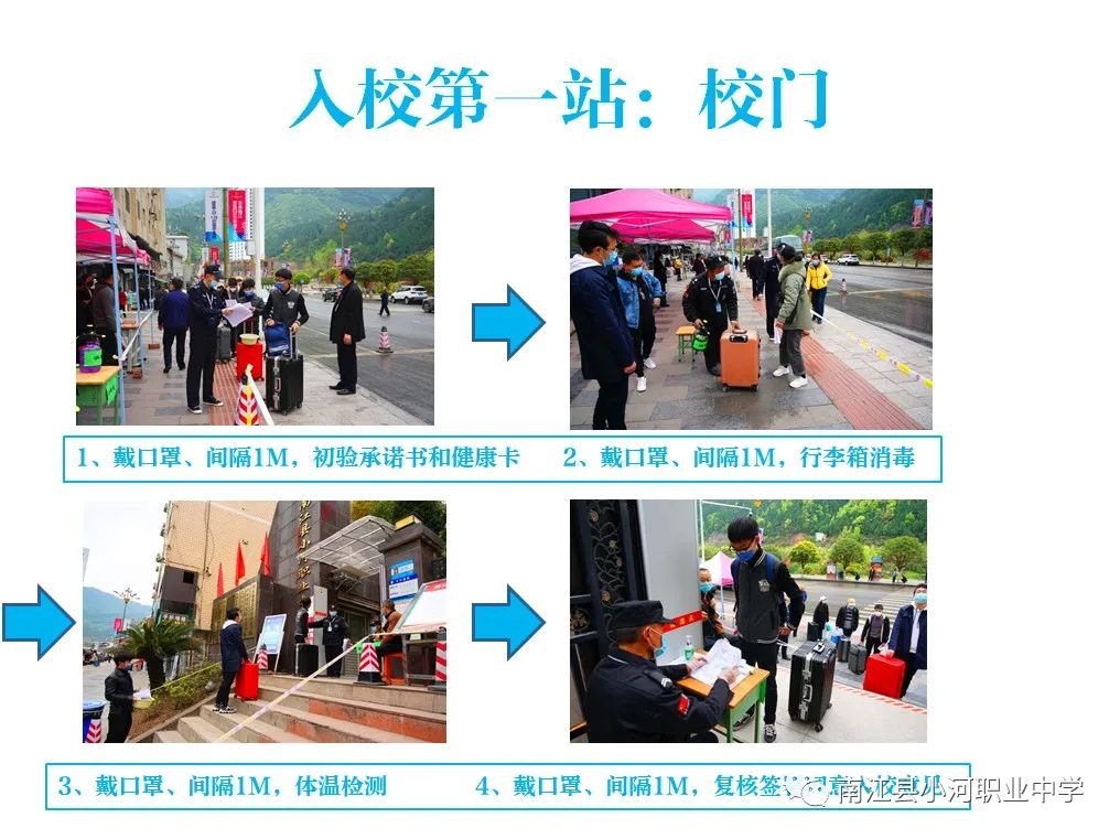 1、全程佩戴口罩,听从指挥,按程序排队、消毒、测温,进入校门,入住宿舍,进班报到。
