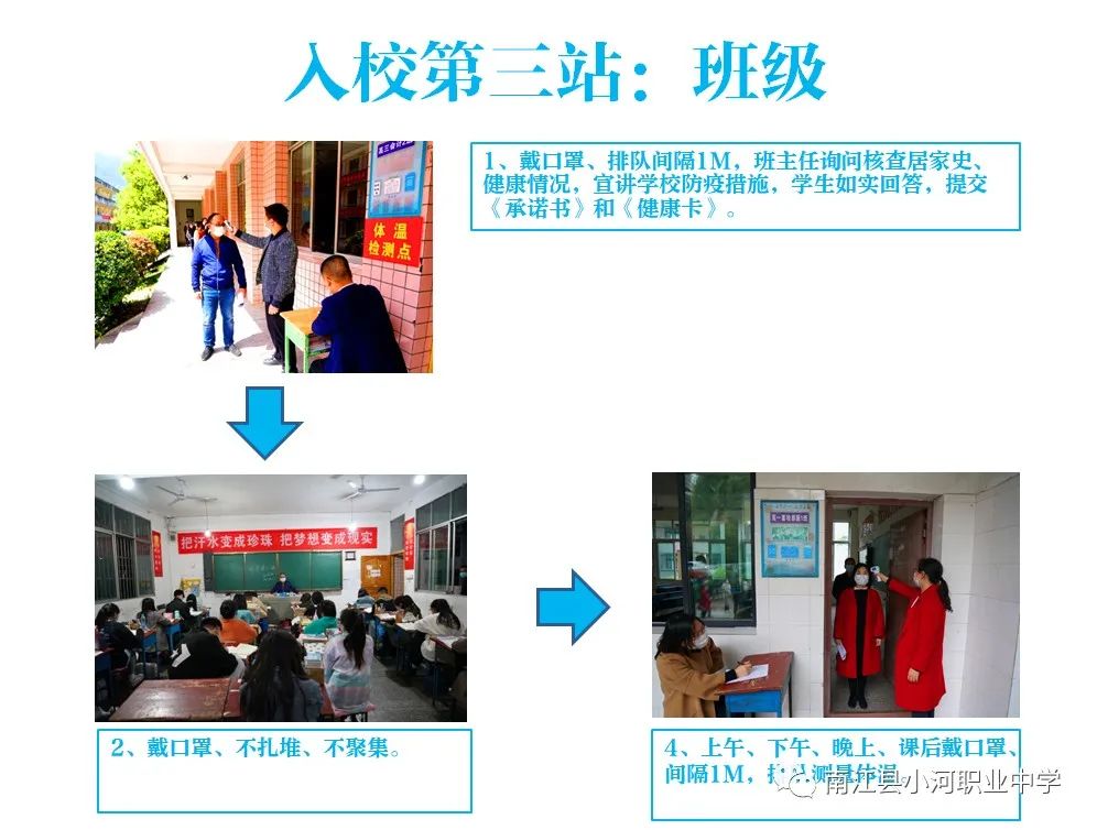 2、进校门前主动验证《南江县2020年春学期学生健康卡》、《南江县防控新冠肺炎家长(监护人)报告学生疫情信息承诺书》,县外学生还需验证《健康证明》,否则不予进入。