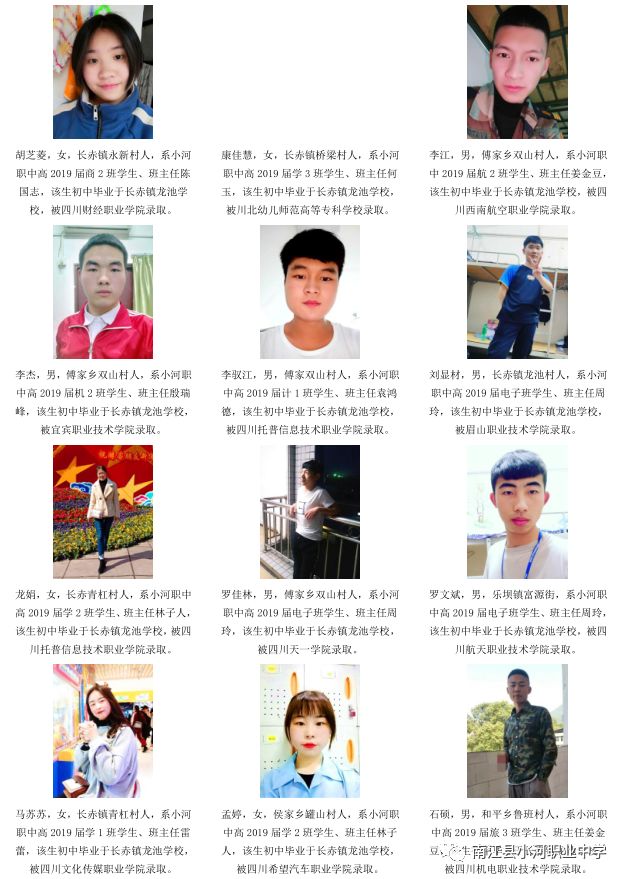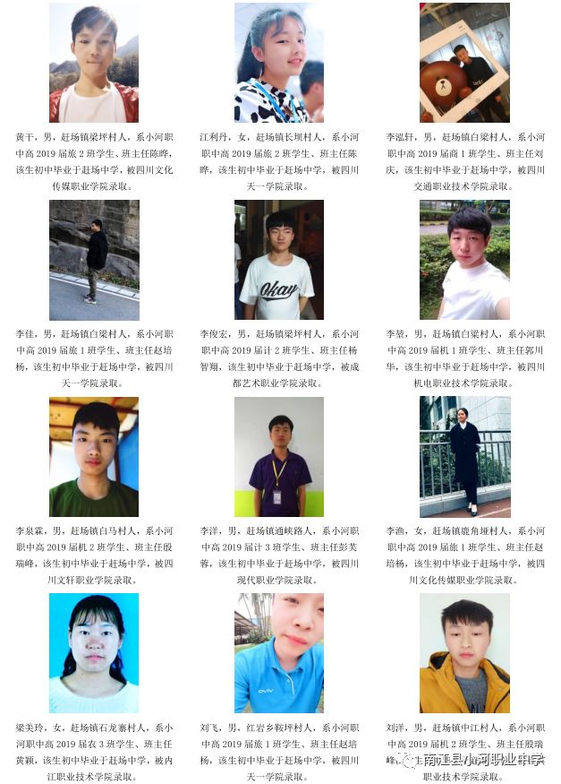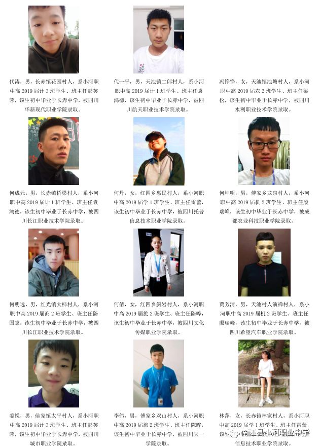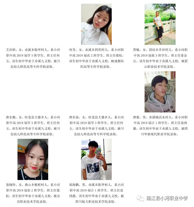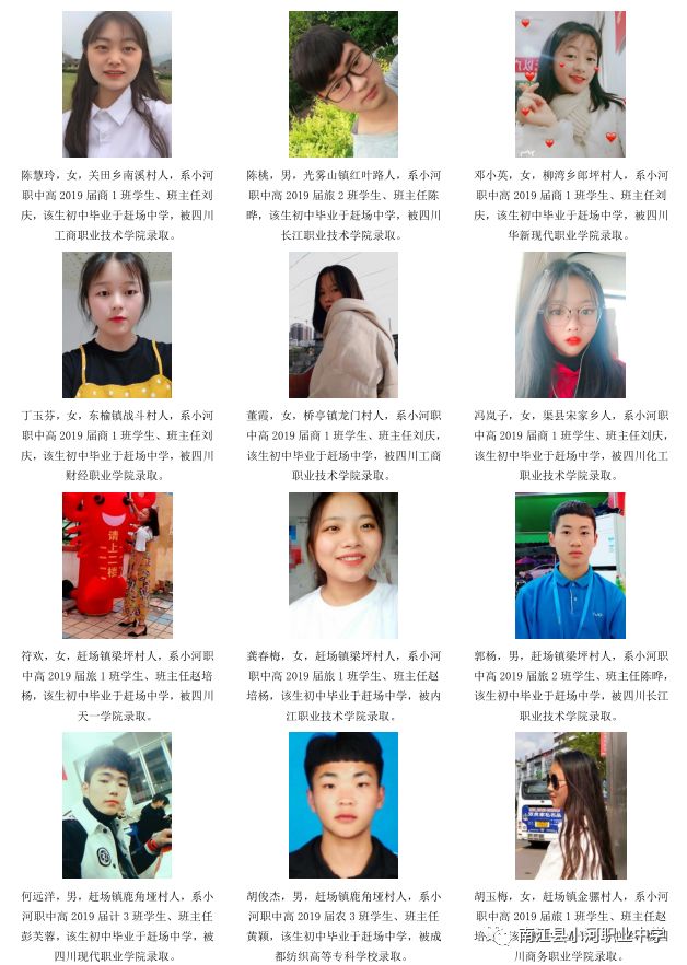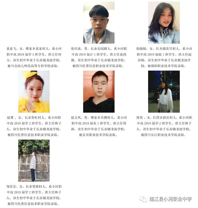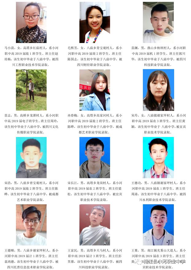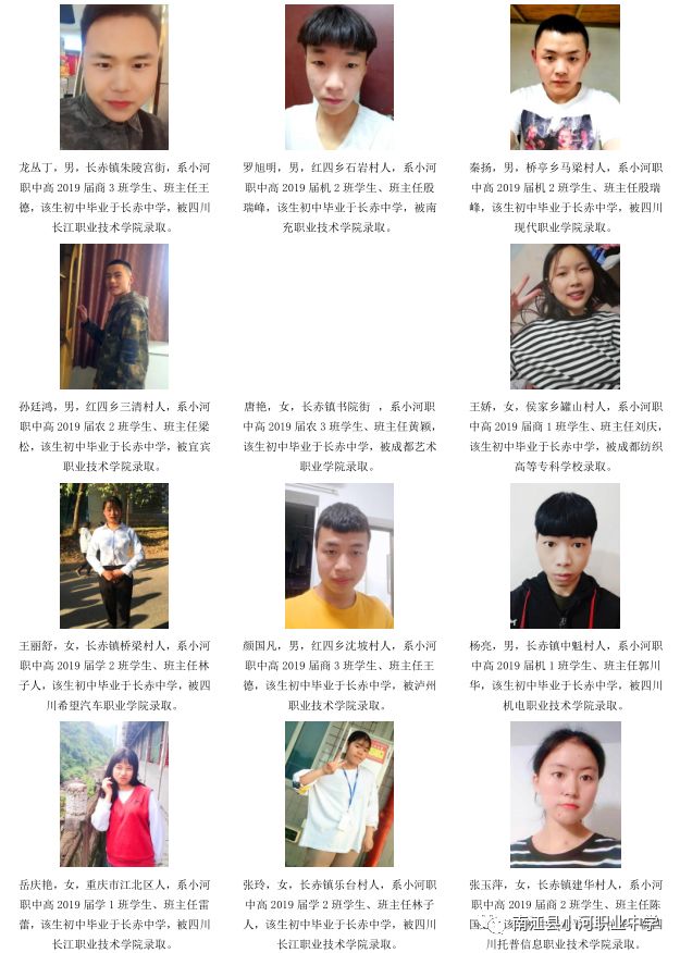 序言概述 喜悦分享 学生名单(小河职中、兴马九义校、杨坝九义校、正直中学、其他学校) 高等学府 2018年职教高考辉煌 我们的校园