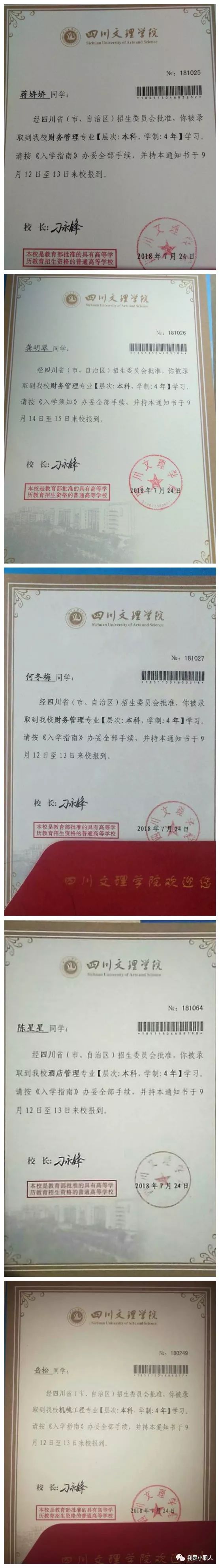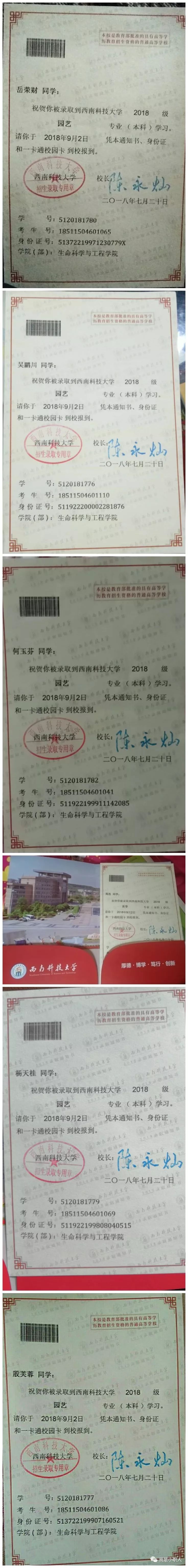 附:南江县小河职业中学2018年职教高考大学本科录取情况(部分)