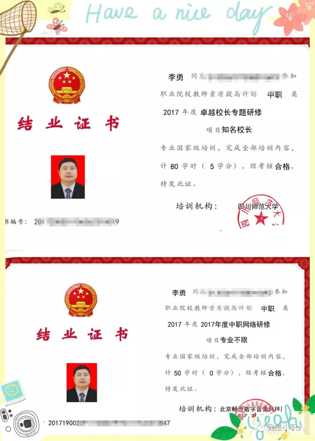 “当然,这些也是参加国家级培训取得的证书”