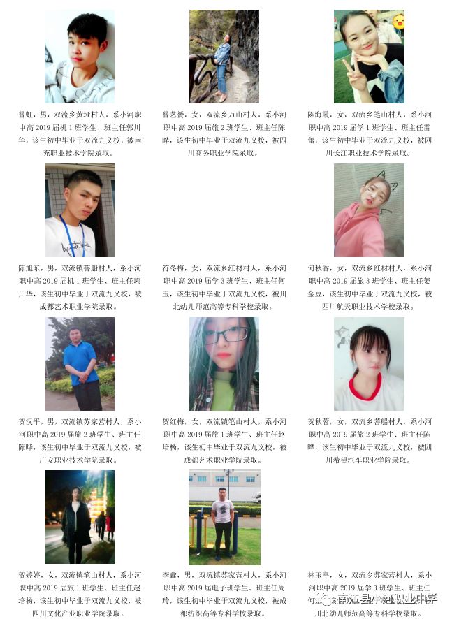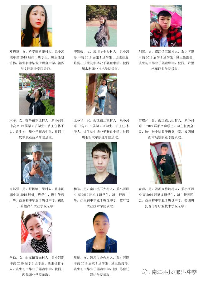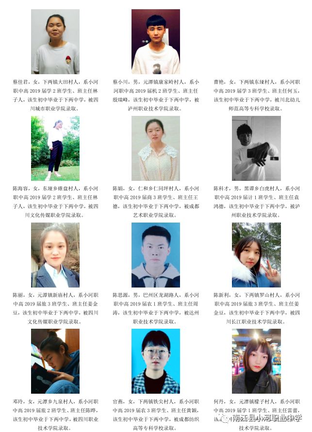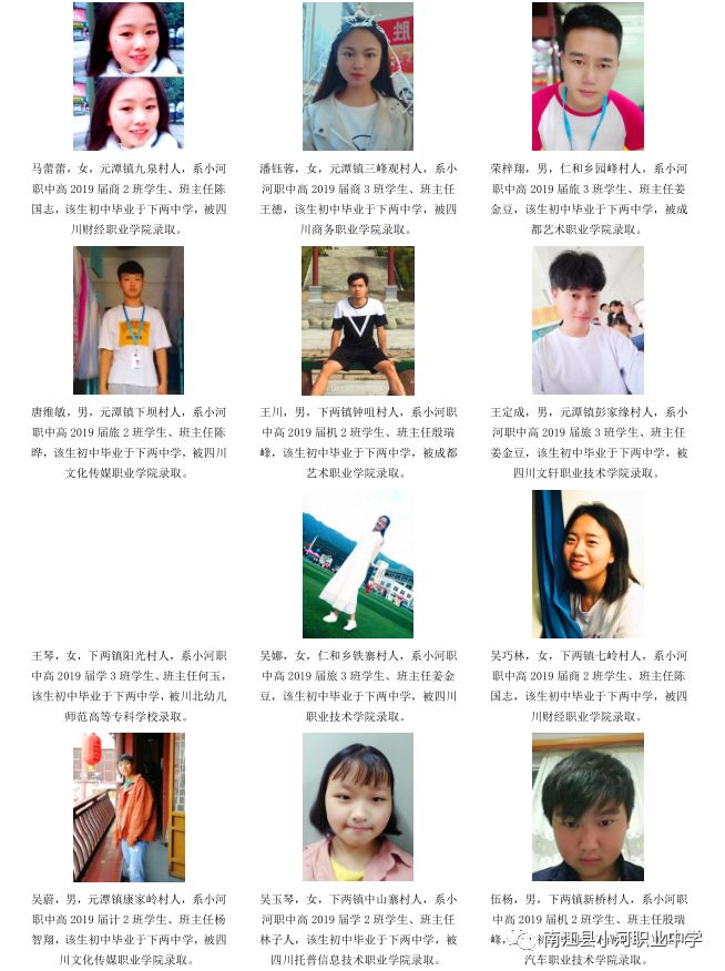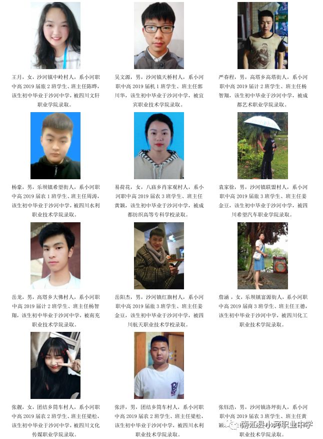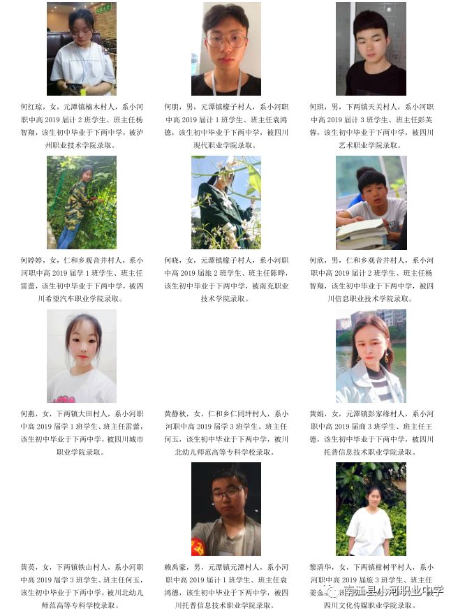 序言概述 喜悦分享 学生名单(小河职中、兴马九义校、杨坝九义校、正直中学、其他学校) 高等学府 2018年职教高考辉煌 我们的校园