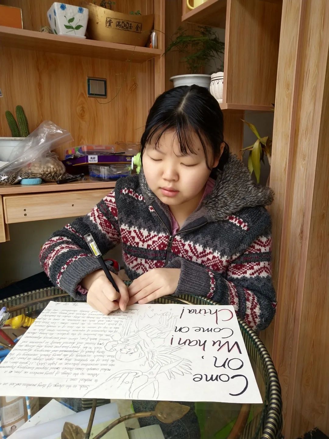 利用这次机会,王婧鼓励学生们用所学的技能作画。她以身示范,不仅自己画了两幅速写画做范本,还发动她同在小河职中担任书法教师的丈夫书写毛笔字。学生们受到王婧的鼓舞,纷纷开始找素材、做构思。