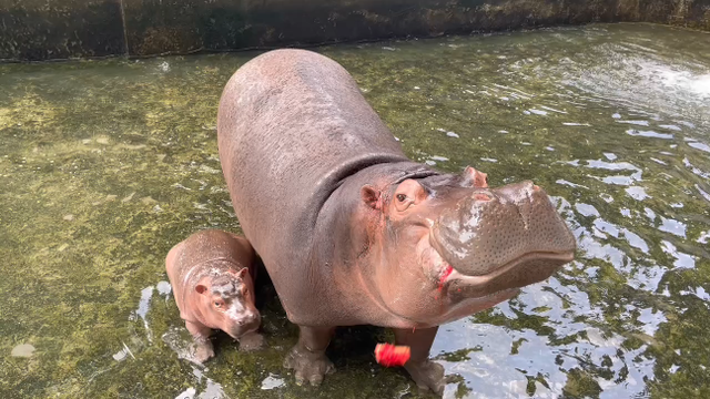 为了河马宝宝的健康,给这对“母婴”一个安静适合的环境,在河马宝宝6个月大之前(还未能独立玩耍、进食),市民游客前来观看河马宝宝的萌态时候还需保持安静,千万不要大声喧哗、逗弄吓唬小“七仔”噢!